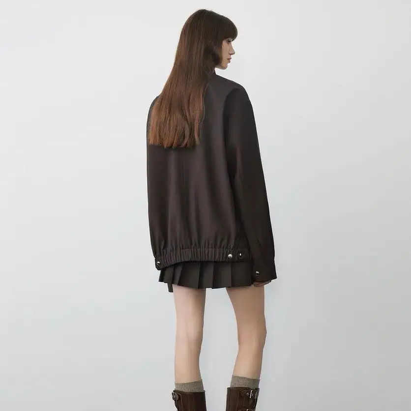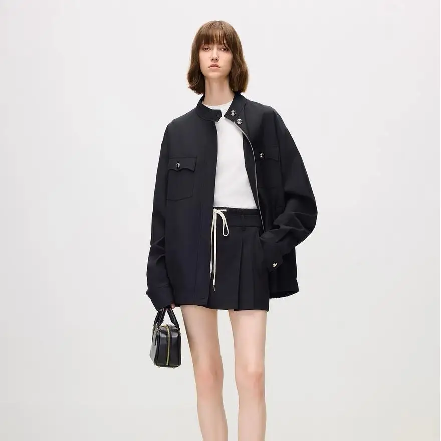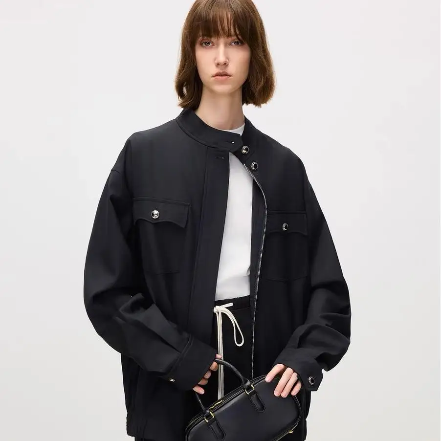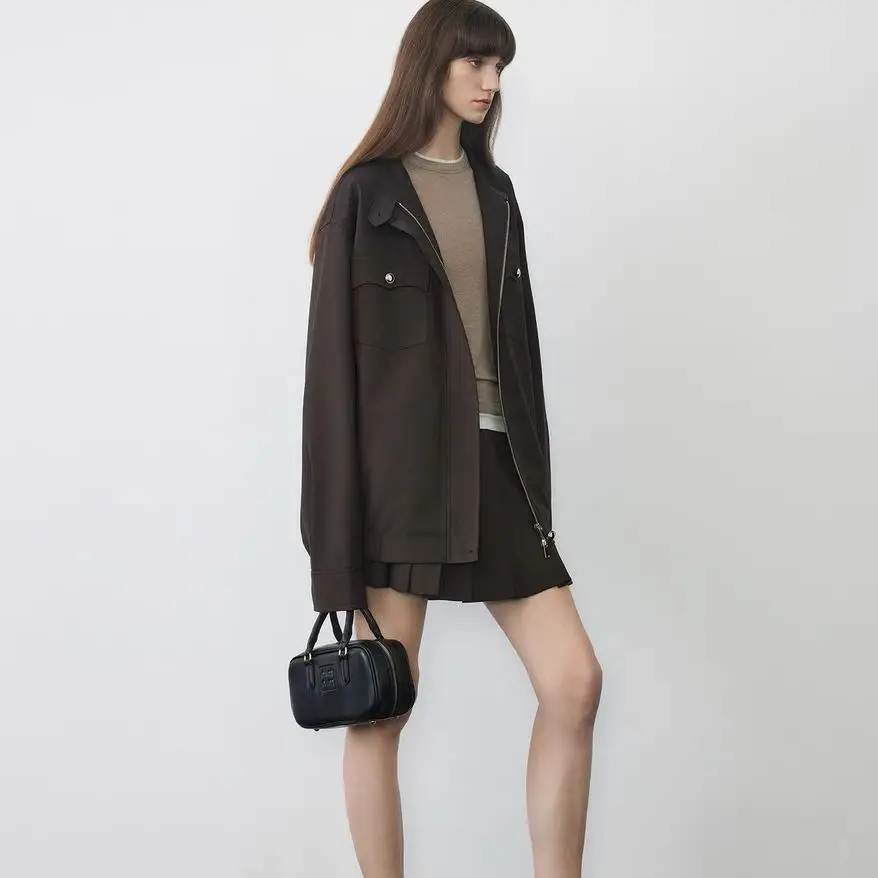 Custom Heavy Duty Vintage Fashion Leather Coat for Women Wide Shoulder Large Lapel Waterproof Casual Outerwear for Spring